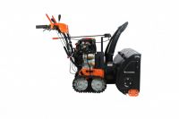 Этот снегоуборщик отличается высокой комплектацией. Он оснащен мощным двигателем на 13 л.с., фарой и электростартером, работающим от сети 220 В. Гусеничное движение обеспечивает отличное сцепление с заснеженным покрытием и исключает скольжение, что позволяет эффективно убирать даже тяжелый снег.